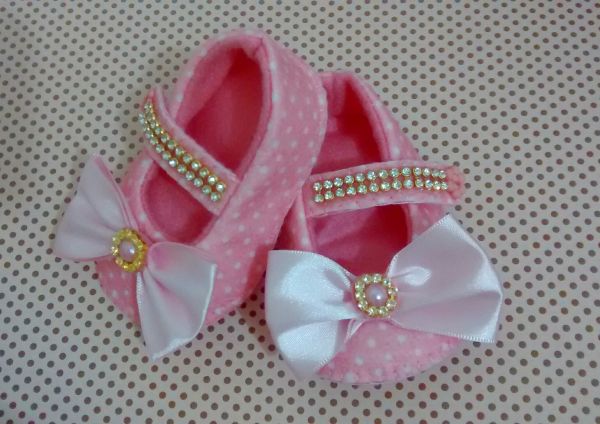 Sapatinho para bebê, confeccionado em tecido de algodão e feltro, solinha estruturada com manta acrílica, que deixa o sapatinho mais fofinho para o pezinho do bebê.